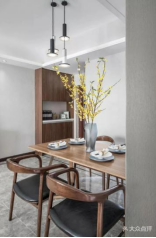 胡桃木(mù)餐桌椅與玄關櫃色調一(yī)緻,甯靜(jìng)優雅又(π≈Ωyòu)不(bù)失質感與格調。