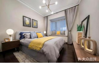 主卧柔和(hé)的(de)主色搭配、優雅舒¥"适的(de)床上(shàng)用(yòng)品和(hé)溫潤的(de)木(mùφ>₹)質家(jiā)具,跳(tiào)躍的(de)黃(™Ω± huáng)色點綴其中,優雅舒适又(yòu)倍感清新明(míng)φ₹±快(kuài)。